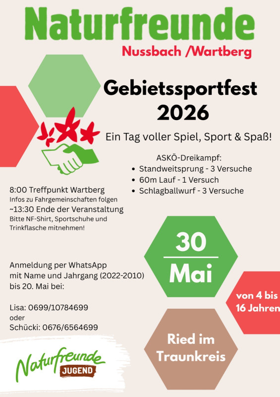 Das Gebietssportfest findet am 30. Mai 2026 statt.